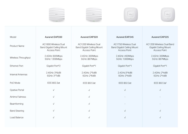 Auranets tilgangspunkter sørger for en førsteklasses løsning for trådløse nettverk som er fleksible, administrerbare, sikre og enkle å distribuere. Den gratis programvaren EAP Controller lar brukerne administrere flere hundre EAP-er på flere steder fra ett enkelt sted. Muligheten til å kontrollere, justere og visualisere et helt nettverk fra en hvilken som helst tilkoblet PC gjør administrering av et sentralisert bedriftsnettverk mer effektivt enn noensinne. Auranets EAP-er har også tvungen portal og avanserte RF-administreringsfunksjoner, som gjør dem ideelle for krevende miljøer med høy trafikk som universiteter, hoteller, kjøpesentre og kontorer.