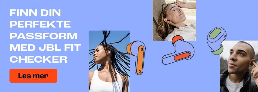 Finn din perfekte passform med (NB! Denne lenken tar deg ut fra Komplett.no) JBL fit checker!.