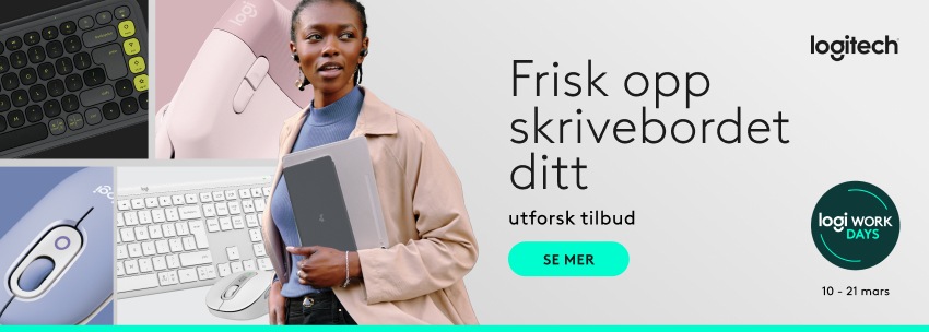 Her finner du et bredt utvalg av produkter fra Logitech og Logitch G, inkludert datamuser, tastaturer, høyttalere, hodetelefoner og webkameraer.
