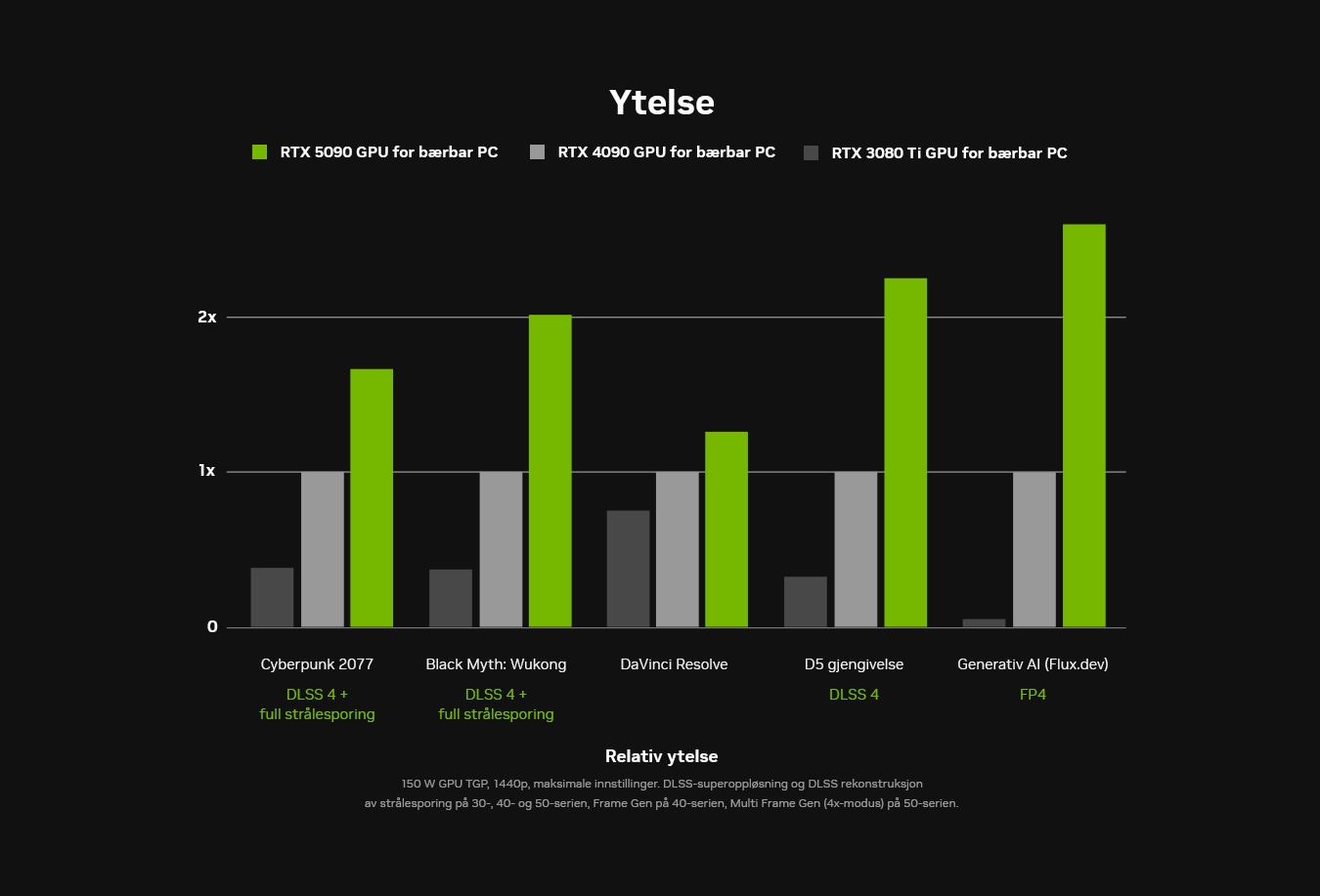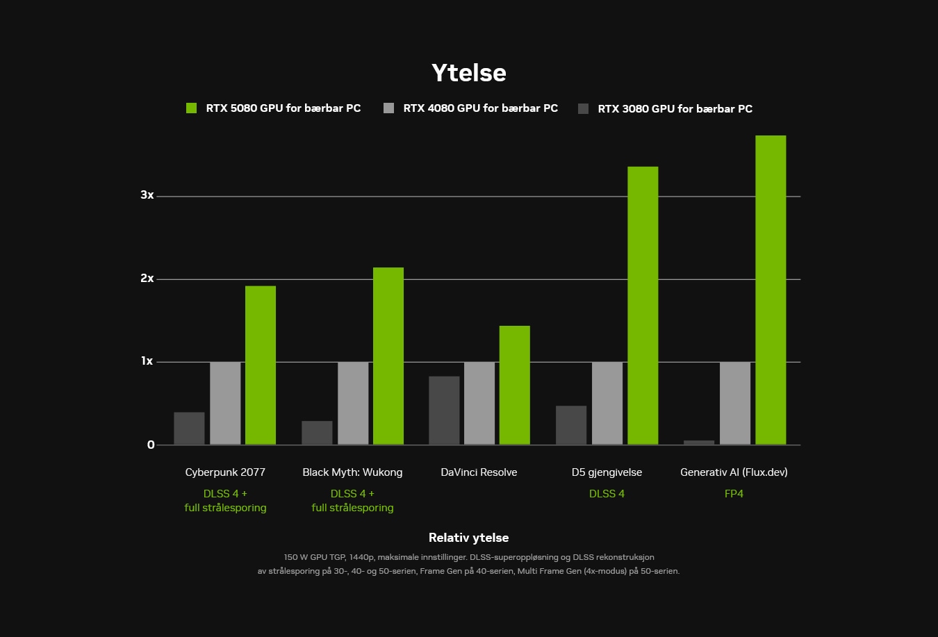 GeForce RTX 50-serie laptop, drevet av NVIDIA Blackwell: Banebrytende AI, DLSS 4 og naturtro grafikk for spillere og skapere med ekstrem ytelse og kreativ frihet.