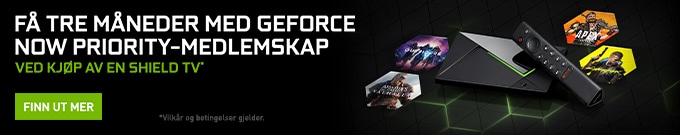 Kjøp NVIDIA Shield TV eller SHIELD TV Pro og få 3 måneder GeForce NOW Priority-medlemskap.