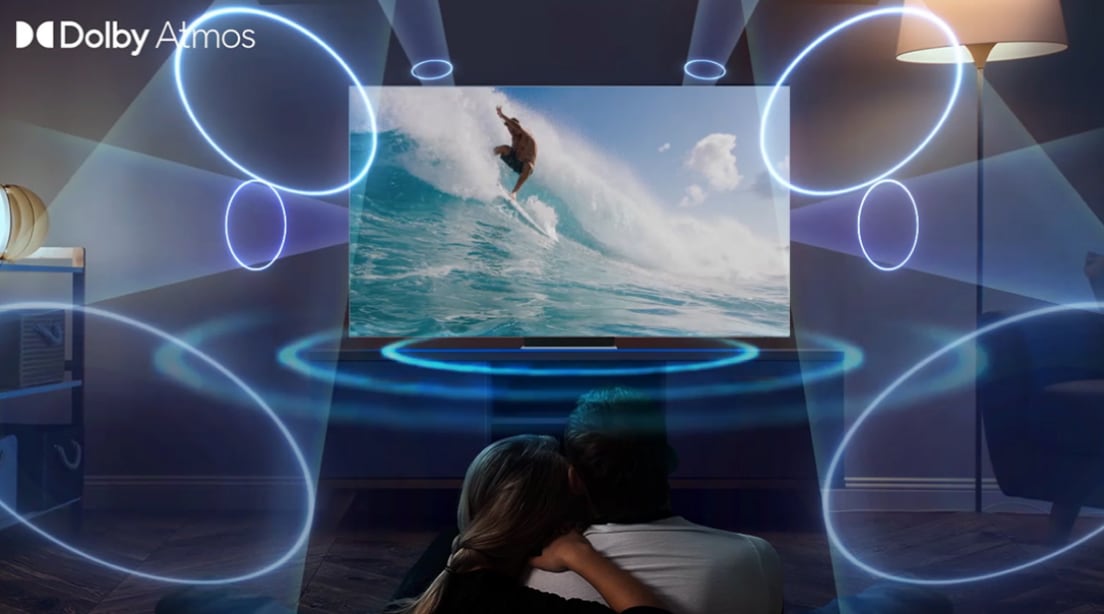 Lev deg inn i innholdet og få en utrolig surroundopplevelse takket være Object Tracking Sound-teknologi. SpaceFit Sound optimaliserer lyden etter omgivelsene, og den nyeste lydteknologien fra Dolby Atmos gir en omsluttende opplevelse med lyd som også kommer ovenfra.