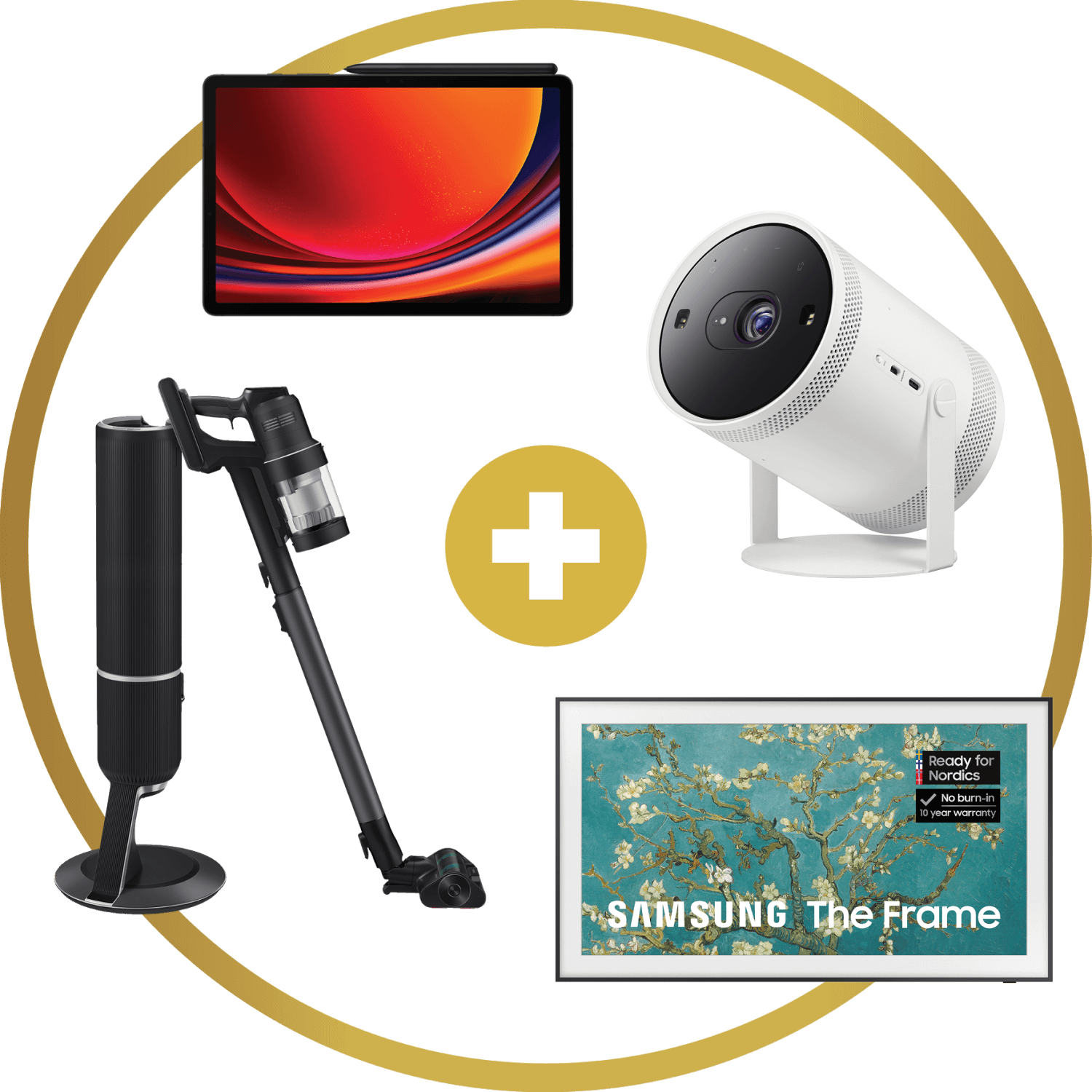 I perioden 7. august – 15. oktober 2023 er enten den portable miniprojektoren The Freestyle, TV-en The Frame 43", Galaxy Tab S9 eller den trådløse støvsugeren Bespoke Jet AI (veil. pris ca. mellom 7 990 – 13 990 kr) inkludert når du kjøper en utvalgt Samsung TV* Se hvordan du får ditt produkt lenger ned på siden*
