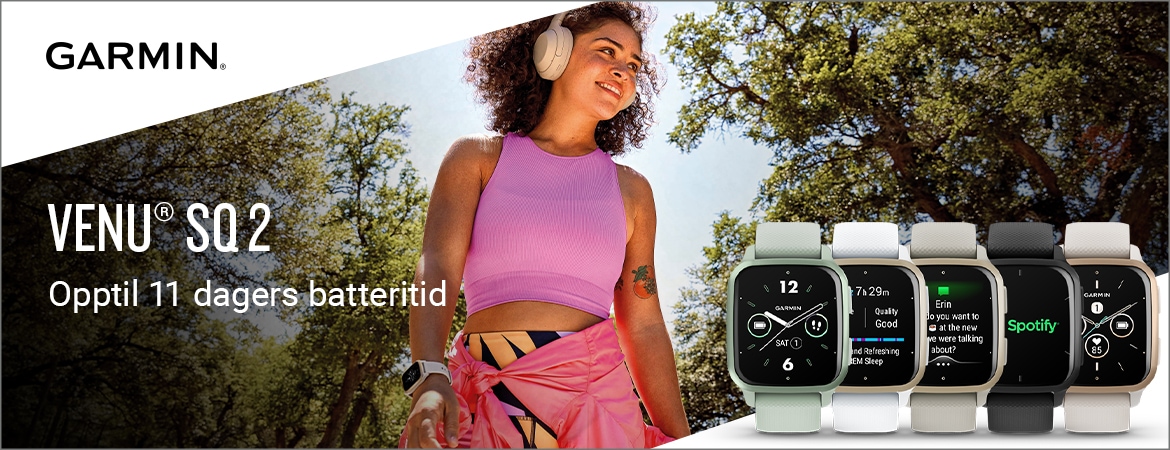 Med opptil 11 dagers batteritid vil du med den nye Venu Sq 2 kunne oppnå en bedre helseovervåkning, sammen med alle treningsapper og funksjoner du er vandt til med din Garmin klokke.