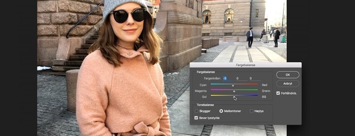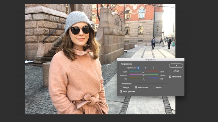 Bilder som er tatt inne har ofte et gulskjær, siden lyspærer ofte har gult lys. Men om bildet har for mye av en farge, kan du enkelt korrigere fargebalansen.