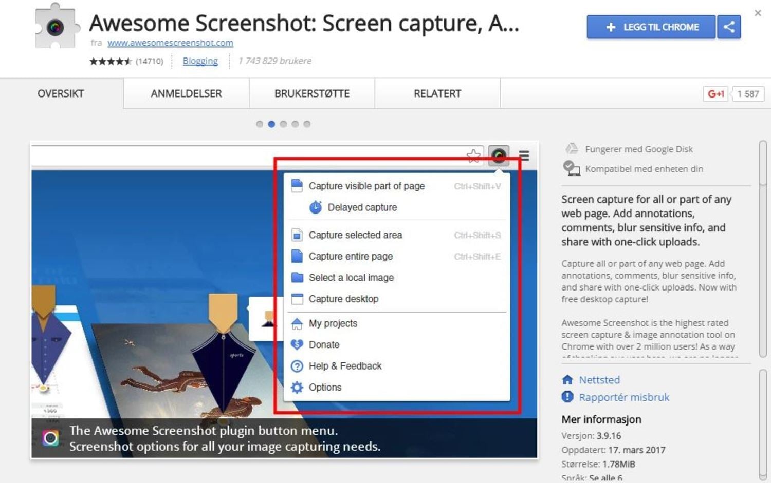 BEDRE BILDER: Awesome Screenshot gjør det lett både å ta og dele skjermbilder. FOTO: SKJERMDUMP CHROME NETTMARKED