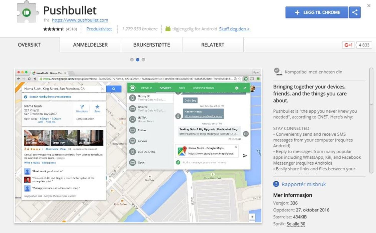 FULL KONTROLL: Pushbullet gjør at du ikke lenger trenger å tenke på om du sitter foran pc-skjermen eller telefonen. FOTO: SKJERMDUMP CHROME NETTMARKED