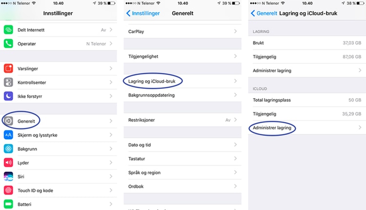 – Du må for det første slå det på. Du får opp valget når du starter en helt ny telefon for første gang, men du kan også slå det på via: Innstillinger > iCloud > Sikkerhetskopi. Det andre du må gjøre er å sørge for å ha nok plass i iCloud. Du får fem gigabyte gratis av Apple, men det holder stort sett ikke. Selv betaler jeg noen tiere i måneden for å ha nok lagringsplass i skyen.