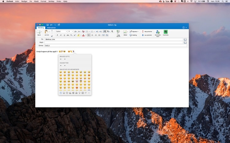 Emojis gjør e-postene dine brennheite – men man bør kanskje tenke en ekstra gang før man bruker dem i jobbsammenheng. Emojis har du enkelt tilgjengelig på Mac ved å trykke CTRL + CMD + Mellomrom. Da får du opp et emoji-panel hvor du kan velge den du ønsker.