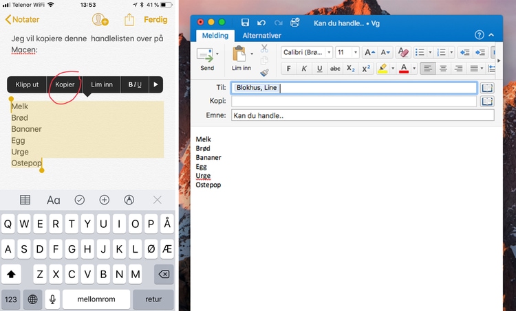 TIPS! Har du synkronisert enhetene dine? Da kan du kopiere notater på mobilen og lime de inn på Mac eller iPad.