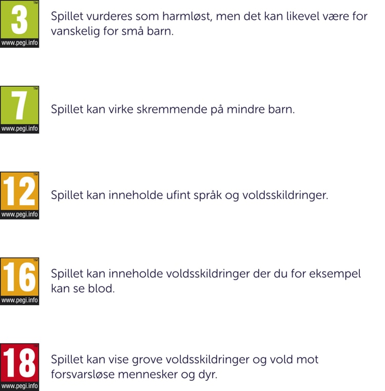 – PEGI-merket forteller hvilken aldersgruppe et spill passer til. Merket sier noe om innholdet i spillet, og skal hjelpe foreldre til å ta et informert valg når de kjøper spill til barna sine, forklarer Espen Harring som er markedsansvarlig for gaming i Komplett.