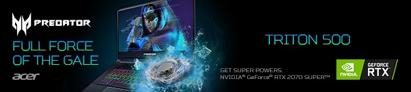 Den tynne og lette Triton 500 er utstyrt med NVIDIA® GeForce® RTX 2070 SUPER™ / NVIDIA® GeForce® RTX 2080 SUPER™. GET SUPER POWERS