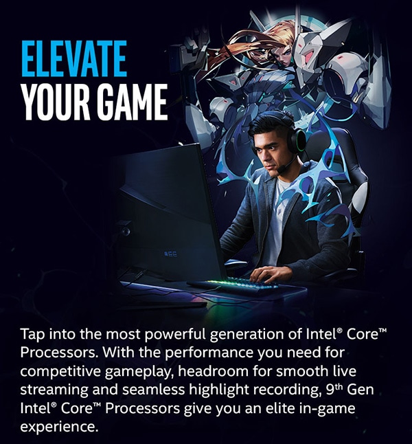 Er du bare fornøyd bare med det aller beste, og du vil kjøre alle spill på max? Da er en PC med Core i9 Prosessor det rette for deg. Her får du ytelse som er veldig tett på ekstreme stasjonære gaming-PCer, men i et ”bærbart” format. Med enorm hastighet tar du deg gjennom gaming, redigering, multitasking, streaming. Sammen med øvrige komponenter av toppkvalitet får du enda høyere FPS, fantastisk kvalitetsfølelse & en gamingopplevelse i verdensklassen!