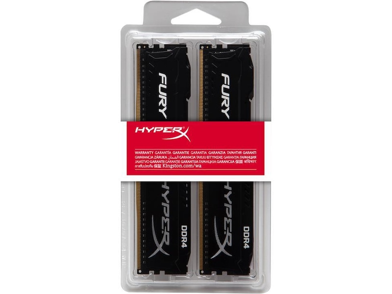 Seksten banker, FURY asymmetrisk varmespreder, On-Die Termination (ODT), Lavprofilvarmespreder, Svart varmesenke, To kanaler, Intel Extreme Memory Profiles (XMP 2.0), Black PCB, Enkeltrad