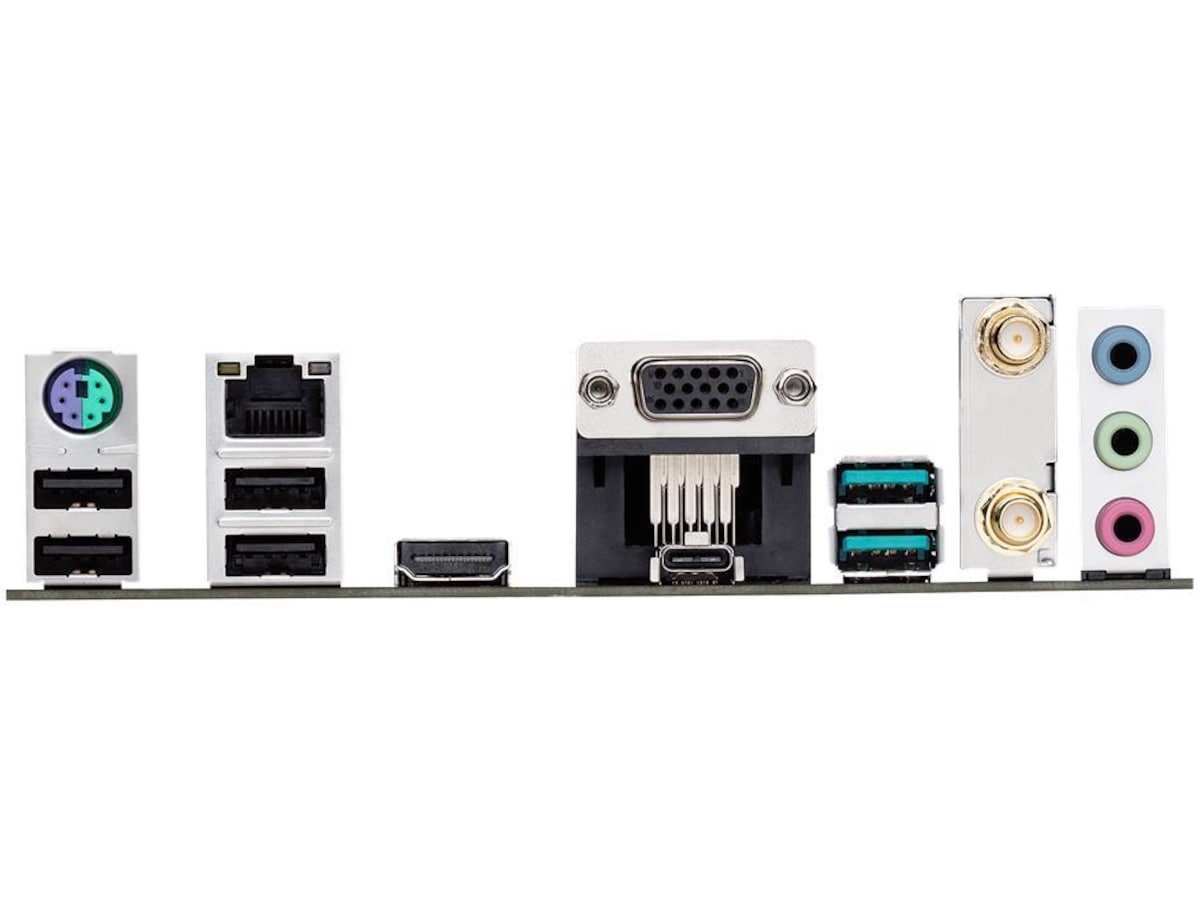 | Grensesnitt | 1 x VGA, 4 x USB 2.0, 1 x lydutlinje - minijakk, 1 x LAN (Gigabit Ethernet), 2 x USB 3.1 Gen 2, 1 x USB-C Gen1, 1 x PS/2-tastatur / -mus, 1 x mikrofon - minijakk, 1 x lydinnlinje - minijakk, 1 x HDMI |