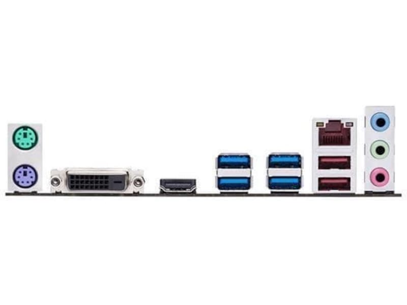 1 x mikrofon - minijakk, 1 x PS/2-mus, 1 x DVI-D, 1 x lydutlinje - minijakk, 2 x USB 2.0, 1 x HDMI, 1 x lydinnlinje - minijakk, 1 x LAN (Gigabit Ethernet), 1 x PS/2-tastatur, 4 x USB 3.0