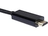 En Displayport til HDMI kabel brukes for å sende Lyd og bilde fra en kilde med Displayport til en skjerm med HDMI plugg. Merk at dette produktet er ikke kompatibel i motsatt retning, dvs. man kan ikke koble fra en kilde som er HDMI til en skjerm med DisplayPort. Kilde kan være PC, Tablet, Blu-ray spiller etc. Display kan være Monitor, TV, Projektor etc.