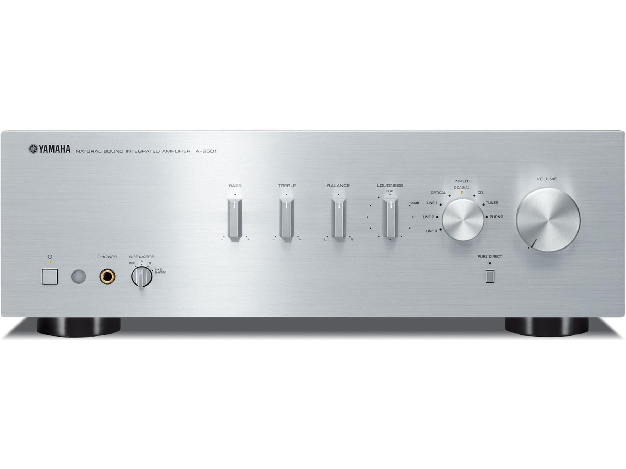 Yamaha A-S501 Svært høy lydkvalitet med et bredt spekter av funksjoner og et elegant utseende. En integrert forsterker med fordelen av digitale innganger. ToP-ART (Total Purity Audio Reproduction Technology) and high quality parts I/O (inngang til utgang) Direct Symmetrical Design - ART (Anti-Resolution and Tough) Base - Custom-made power transformer / 12,000uF block capacitors / Aluminum-extruded heat sinks 120W x 2 (max), 85W x 2 (RMS) utgangseffekt Pure Direct Mode for større renhet av lyden Kontinuerlig variabel loudnesskontroll Gold-plated speaker terminals and RCA (CD, Phono) and coaxial terminals Digital lydinngang for TV eller Blu-ray-spiller Tilkobling for YBA-11 Bluetooth Wireless Adapter Simple yet sophisticated design (aluminium front panel) Auto Power Standby