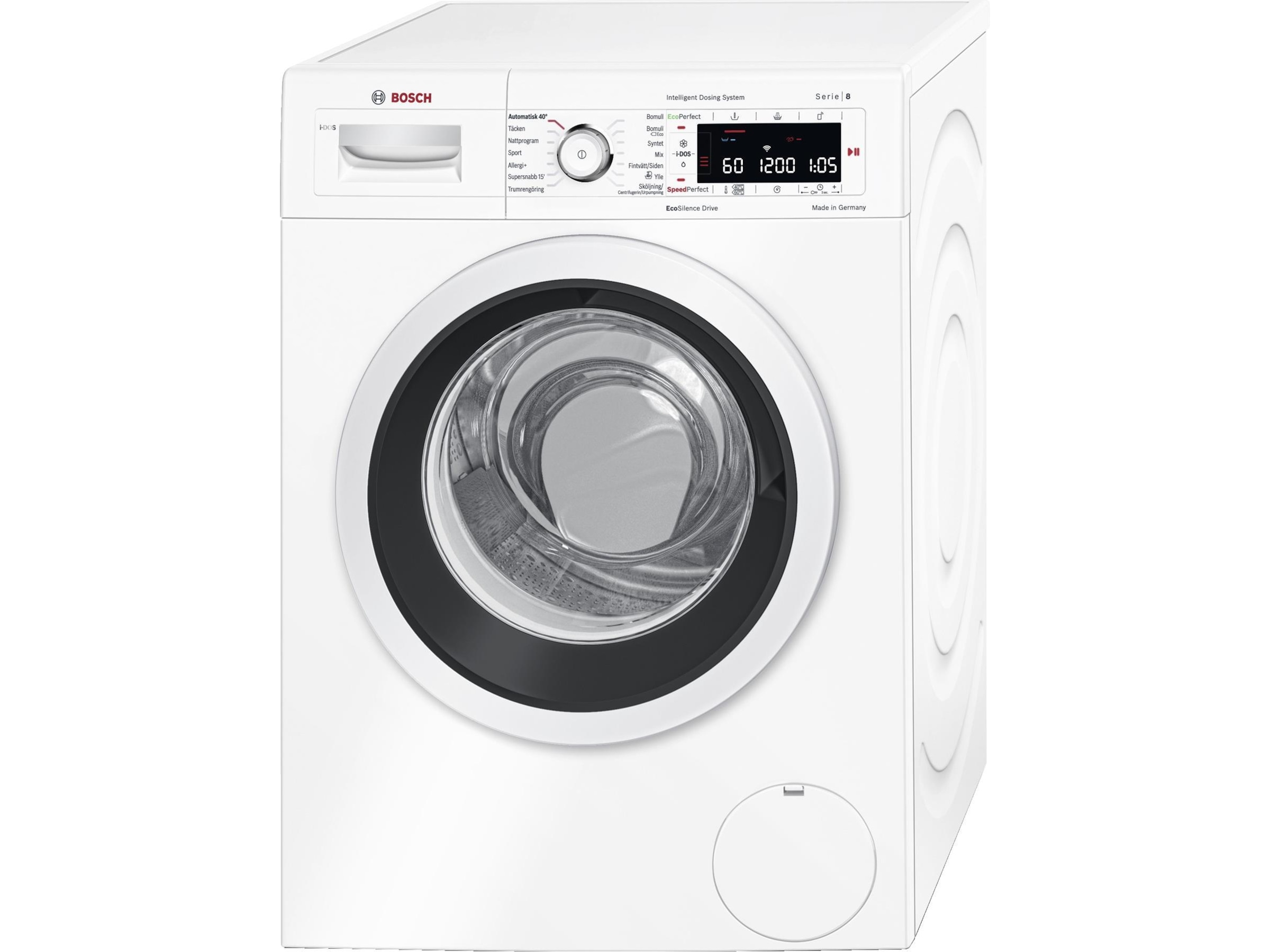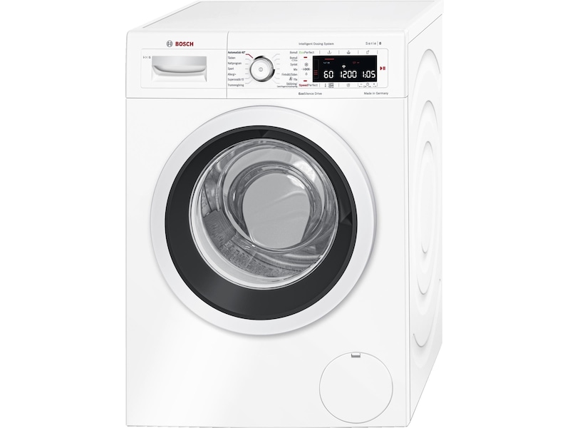 ecoPerfect, Forvask, I-DOS 2, Miks, Super Quick 15, Nedfyllt innhold, Trommelrengjøring, Skyllehold, Håndvask/ull, Hvitt/farget, Delikat tøy/silke, Redusert stryking, Sportsklær, Allergy Plus, Delikat, Nattsyklus, Mulighet for å tilføye artikkel, Automatisk, I-DOS 1, SpeedPerfect