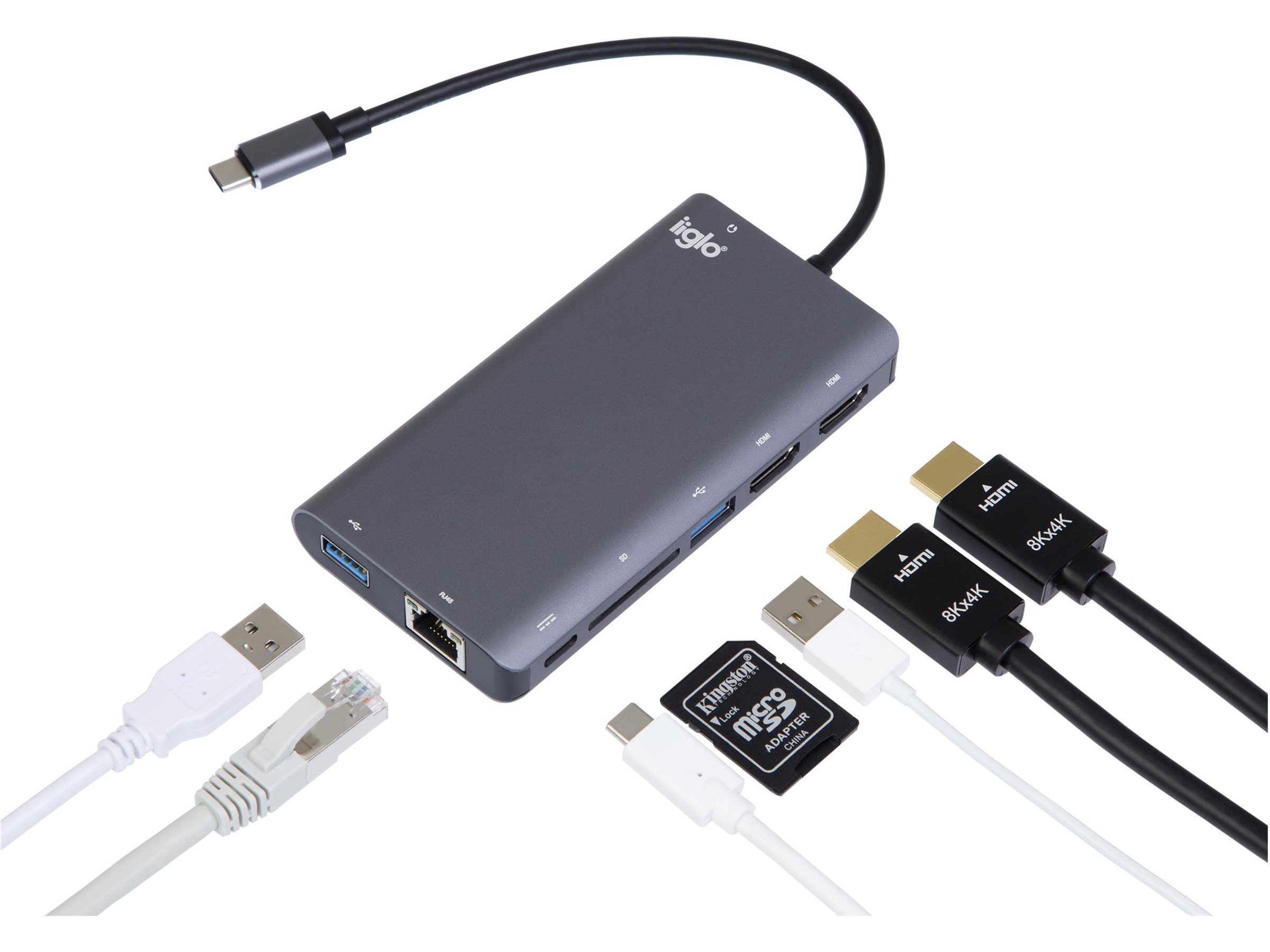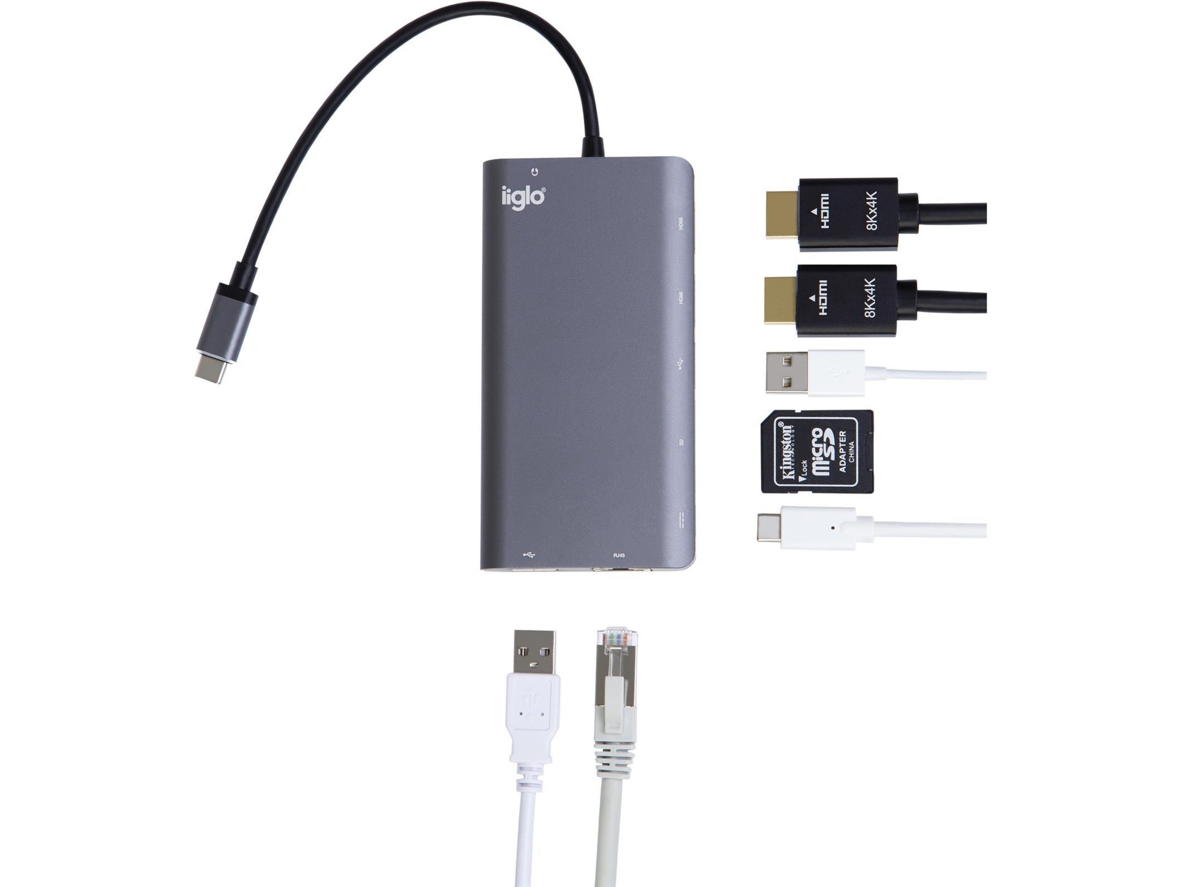 1 x nettverk - RJ-45, 1 x USB-C med Power Delivery (100 W) - 24 pin USB-C, 1 x lyd - hodetelefoner/mikrofon - 4-pols 3,5 mm-minijakk, 2 x audio / video - HDMI - 19 pin HDMI Type A, 2 x SuperSpeed USB 3.0 - 9-pins USB-type A