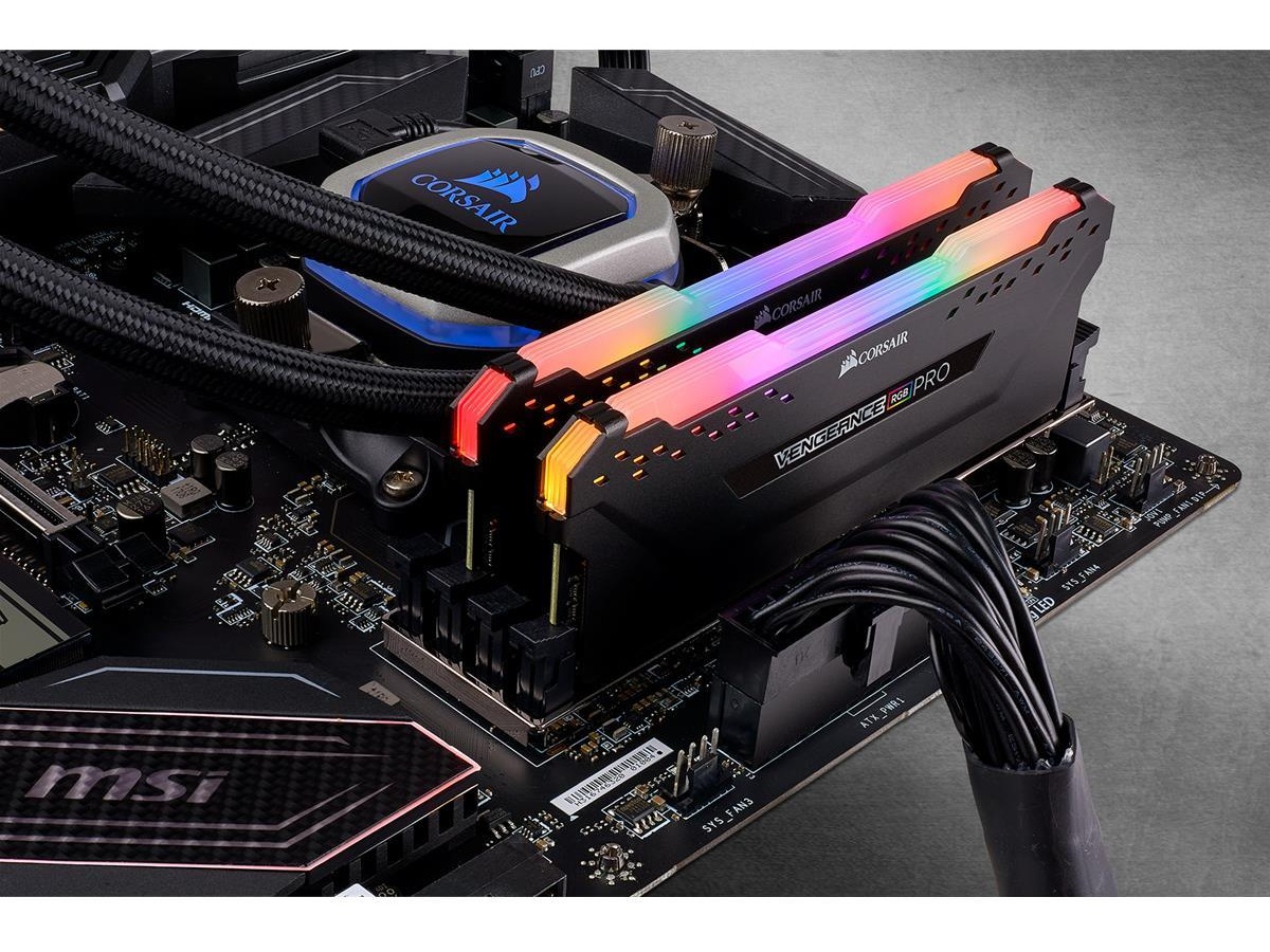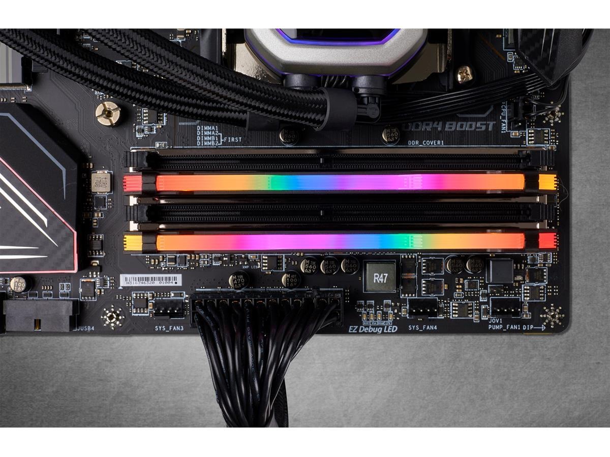 To kanaler, Dynamisk flersone RGB-belysning, Intel Extreme Memory Profiles (XMP 2.0), Corsair iCUE-støtte, Dynamiske RGB-effekter, Anodized aluminum heatspreader, Støtte for MSI Mystic Light RGB, Støtte for Gigabyte RGB Fusion