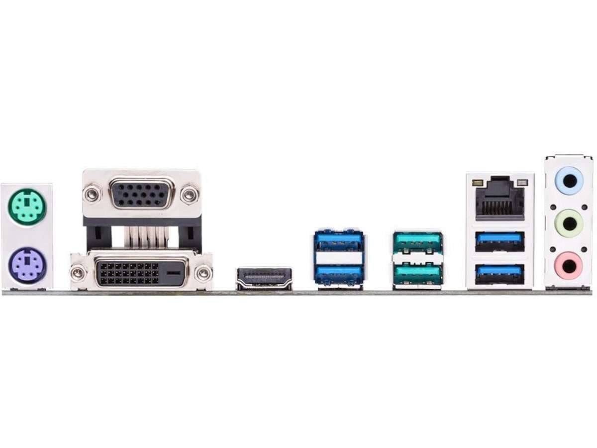 1 x DVI-D, 1 x HDMI, 1 x LAN (Gigabit Ethernet), 1 x lydinnlinje - minijakk, 2 x USB 3.1 Gen 2, 1 x PS/2-tastatur, 1 x lydutlinje - minijakk, 1 x PS/2-mus, 4 x USB 3.1 Gen 1, 1 x VGA, 1 x mikrofon - minijakk