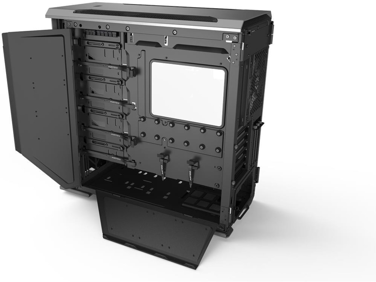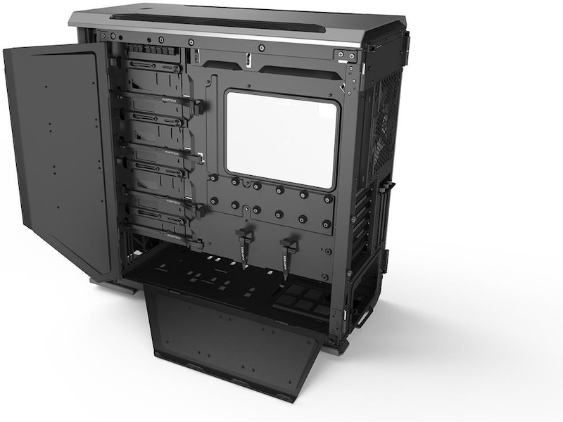 4 x 3,5" HDD-bøyle, Luftflytdeksel, Verktøysboks, Tilbehørspose, Vertikal GPU-montering