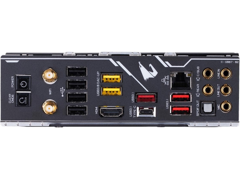 4 x USB 2.0, 1 x HDMI, 1 x TOSLINK, 1 x lydutlinje - minijakk, 2 x USB 3.1 Gen 1, 1 x lydinnlinje - minijakk, 1 x LAN (Gigabit Ethernet), 1 x lydutlinje (senter/subbasshøyttaler) - minijakk, 1 x lydutlinje (bakre) - minijakk, 3 x USB 3.1 Gen 2, 1 x mikrofon - minijakk, 1 x USB-C Gen2