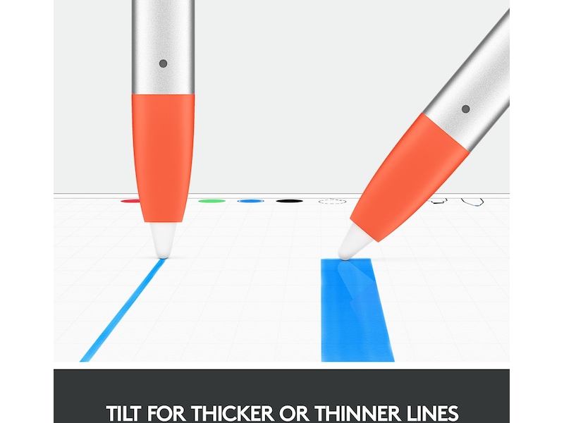 Trenger du en tykkere eller tynnere linje? Bare sett enheten i vinkel. Logitech Crayon har en smart spiss som justerer linjevekten dynamisk avhengig av vinkelen* du setter den i – akkurat som en vanlig blyant.