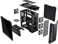 - Plass forbeholdt for både front- og toppmontert 360 mm vannkjølende radiatorer pluss en 140 mm radiator på baksiden.