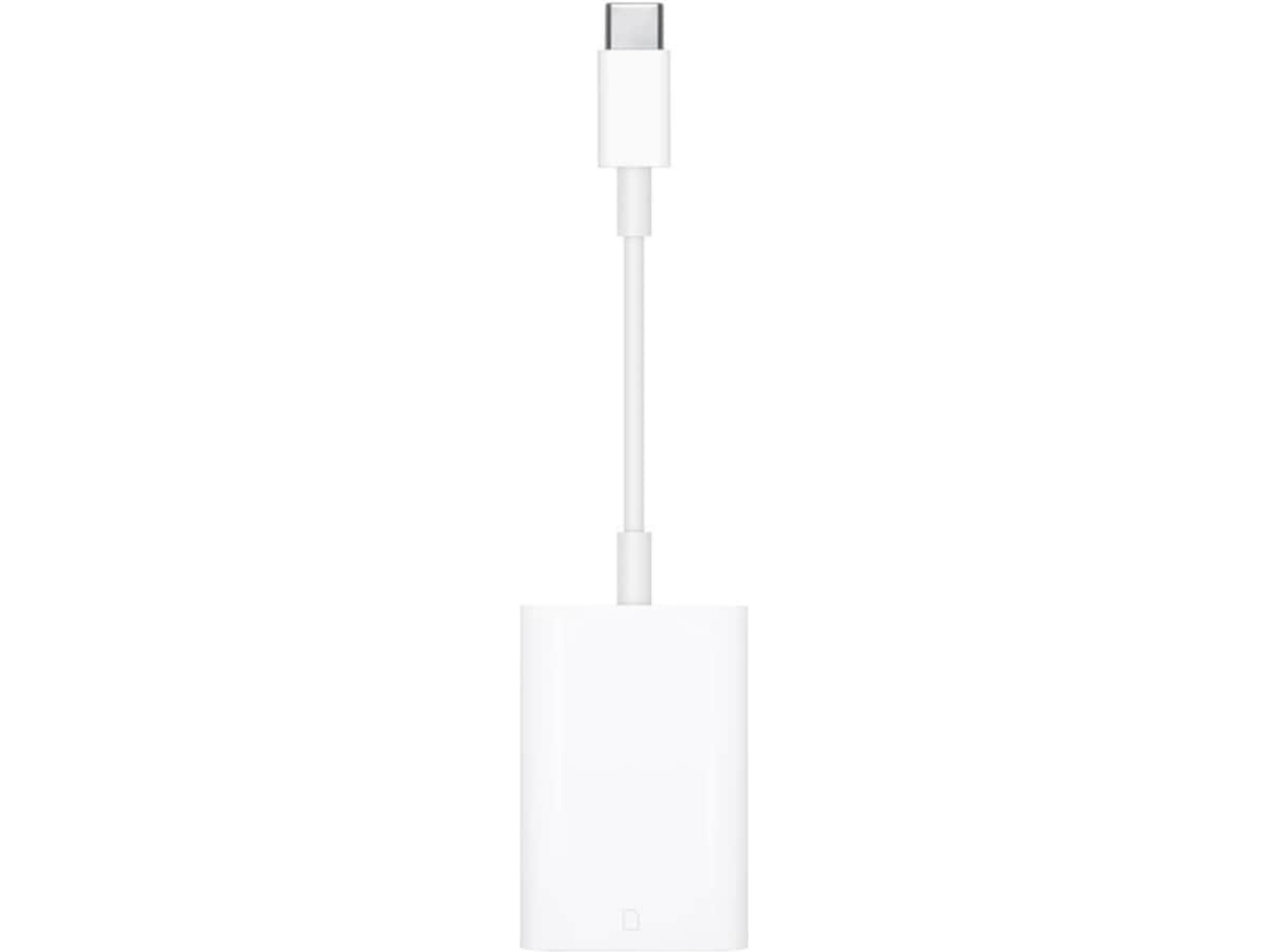 USB-C-til-SD-kortleseren overfører bilder og videoer i høy oppløsning ved UHS-II-hastigheter til Mac, 11-tommers iPad Pro eller 12,9-tommers iPad Pro (3.gen.). Den har en design som ikke blokkerer de andre portene, og den fungerer med UHS-II-SD-kort og er bakoverkompatibel med andre SD-kort og -adaptere.