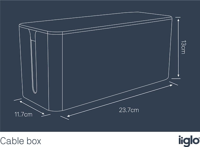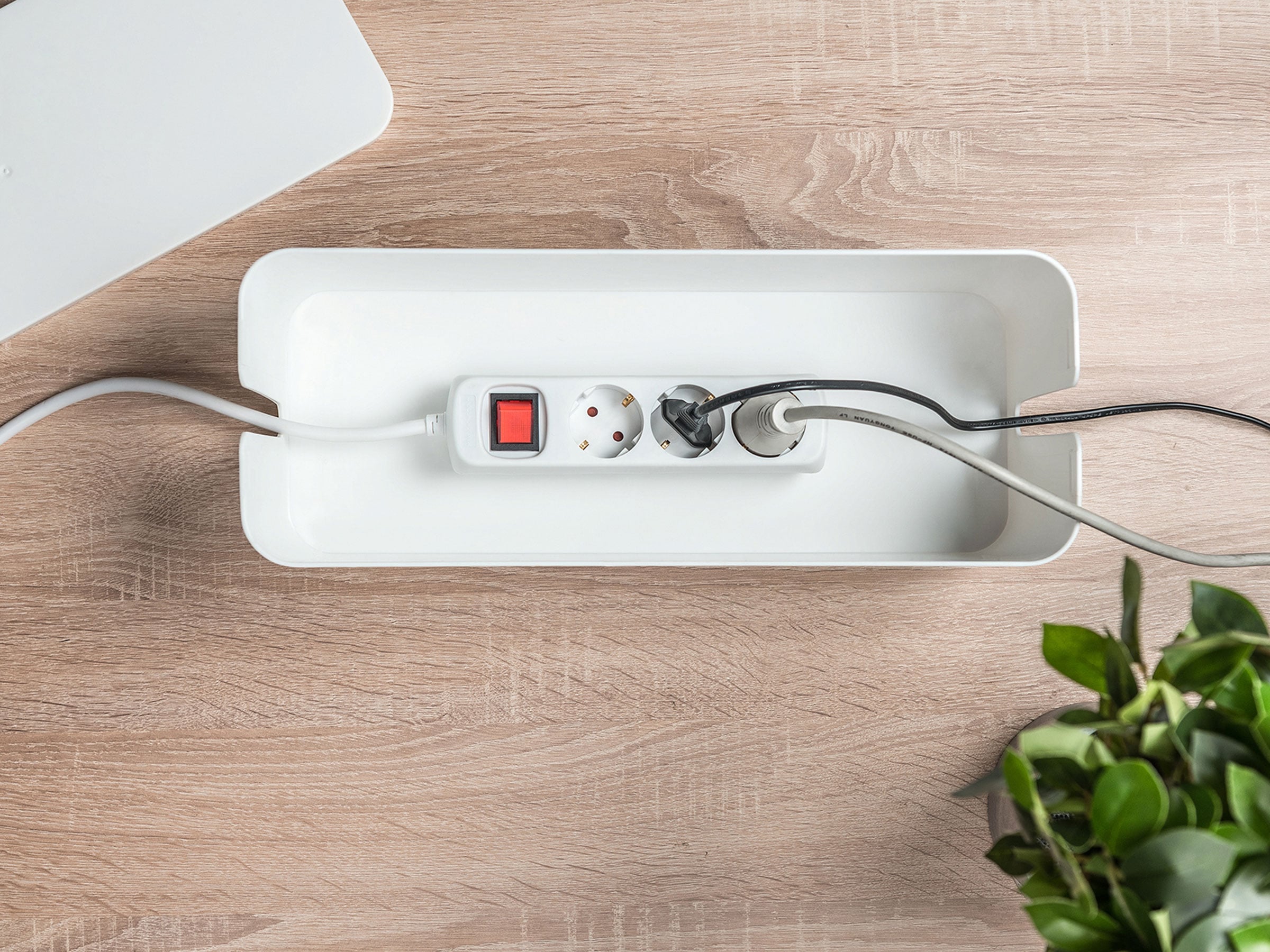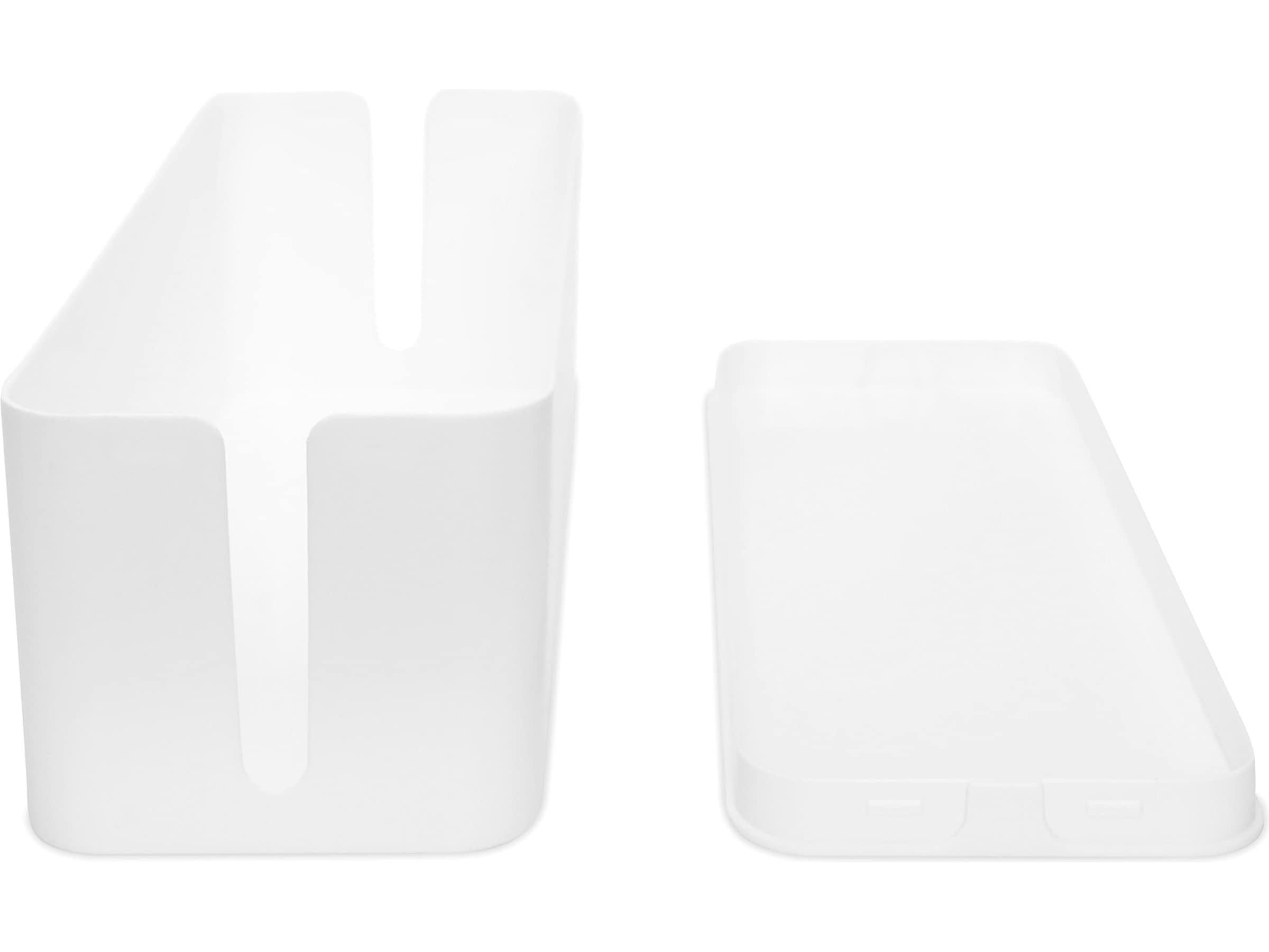 Har du en rotete haug med skjøteledninger og kabler liggende rundt skrivebordet ditt? iiglo kabelboks er en perfekt løsning for å holde hjemmet eller kontoret ditt ryddig og organisert! Legg alle ledninger, skjøteledninger og adaptere i boksen og lukk lokket for å skjule alle rotete kabler og beskytt dem mot støv og vannsøl. Med sin minimalistiske design og hvite overflate passer den inn i alle innredningsstiler. Få en slutt på kabelrotet i dag!