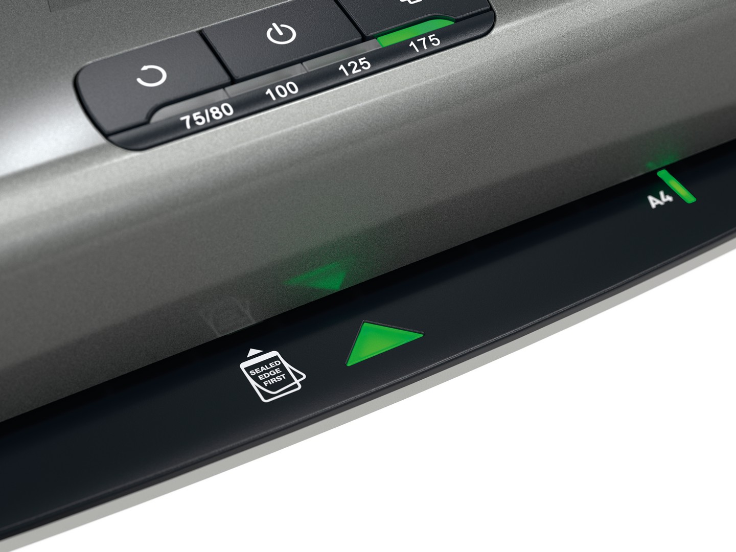 Kompatibel med lamineringslommer som er 75/80, 100, 125 og 175 my (mikron) tykke.