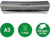 Laminerer et 80 my A4-dokument på ca. 23 sekunder. Også kompatibel med A4 "high speed"-lommer (forsegling på langsiden) for økt produktivitet.