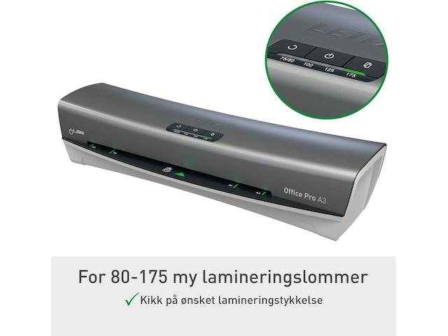 Kompatibel med lamineringslommer som er 75/80, 100, 125 og 175 my (mikron) tykke.