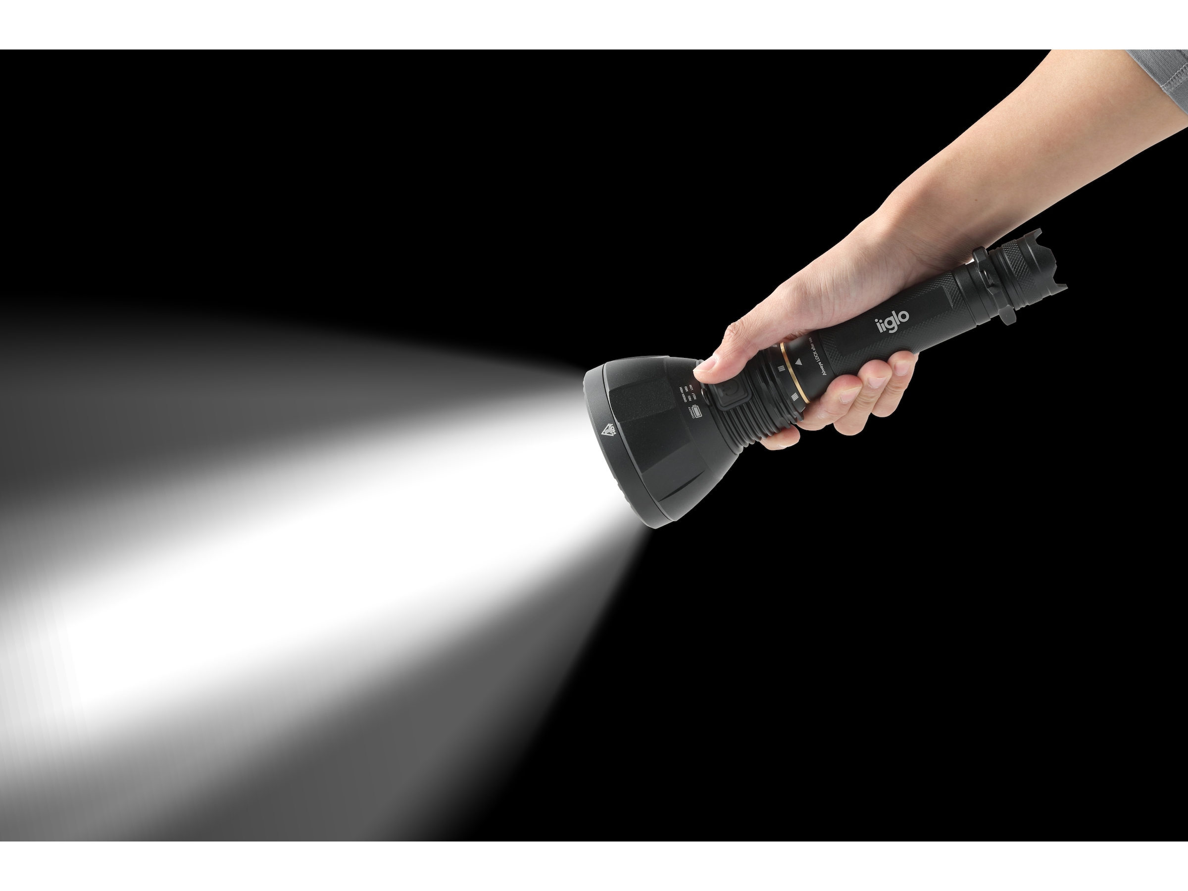 Håndholdt lommelykt med XHP Cree hvit LED pære som gir inntil 10 000 lumen styrke. En lang rekkevidde på opptil 490 meter gjør den ideell for søk om natten. Med sin kompakte utforming er den perfekt både for profesjonelle og for fritidsbruk når man har behov for å lyse opp et område på lang avstand.