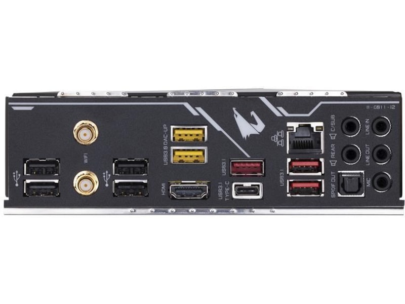 1 x lydinnlinje - minijakk, 1 x mikrofon - minijakk, 2 x USB 3.1 Gen 1, 1 x USB-C Gen2, 1 x lydutlinje - minijakk, 1 x lydutlinje (bakre) - minijakk, 4 x USB 2.0, 1 x TOSLINK, 1 x LAN (Gigabit Ethernet), 1 x lydutlinje (senter/subbasshøyttaler) - minijakk, 3 x USB 3.1 Gen 2, 1 x HDMI