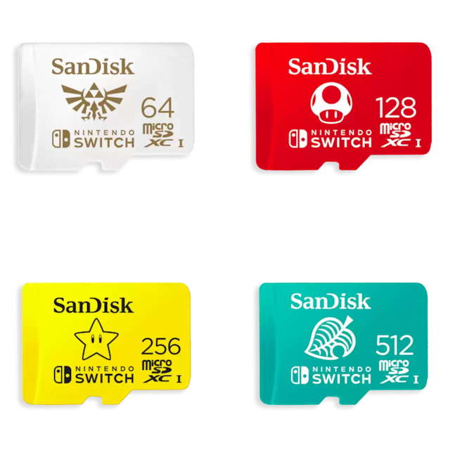 Det offisielt lisensierte SanDisk microSDXC-kortet for Nintendo Switch gir pålitelig lagring med høy ytelse for konsollen din. Legg til en kapasitet på opptil 512 GB1 slik at du kan ha alle favorittspillene dine på ett enkelt kort.