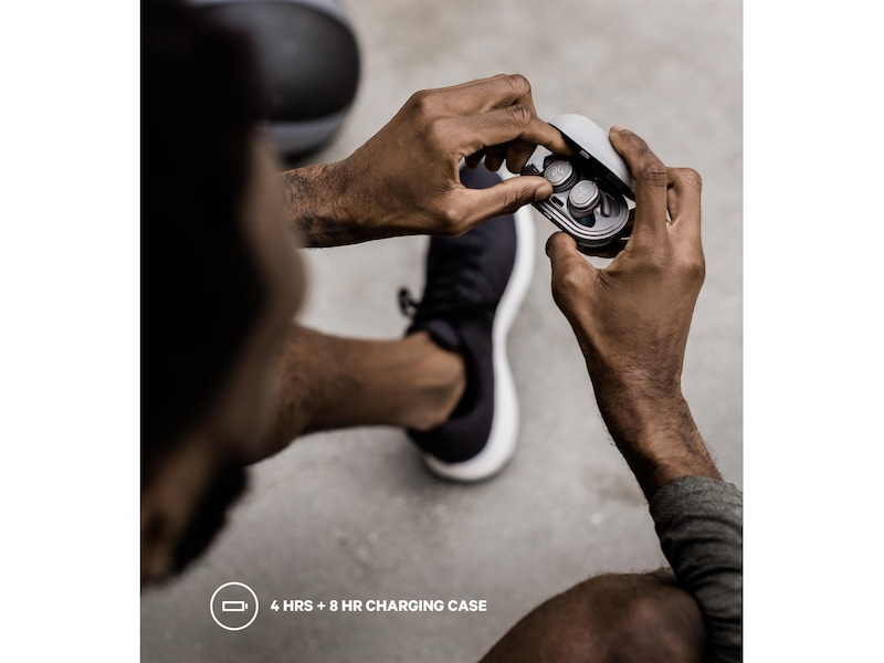 ørepropp: 1.43 cm x 1.9 cm x 1.95 cm / 6.83 g, Ladeboks: 7.7 cm x 4.3 cm x 4 cm / 56.6 g