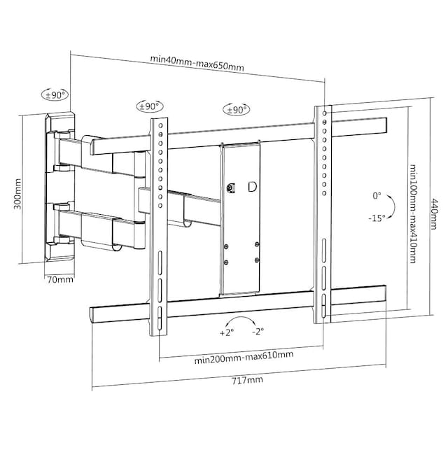 Det ekstra slanke og fleksible veggfestet kan holde de fleste buede TV-er og flatskjerm-TV-er på 32–60" med en vekt på opptil 30 kg. Festet bygger kun fra 40mm til 650mm ut fra veggen, likevel med mulighet for bevegelser i alle retninger. iiglo Tv Wall Mount TVW1412 holder løse kabler organisert, noe som skaper et ryddig utseende uten at det går ut over mulighetene til å bevege på TV-en. Dette festet strekker seg 650 mm ut fra veggen og gir god plass for å dreie TV-en til venstre og høyre helt opptil 90°. Nivåjustering etter installasjon gjør at TV-en kan posisjoneres perfekt etter at den er hengt opp. Kompatibel med VESA-hull på opptil 600x400.