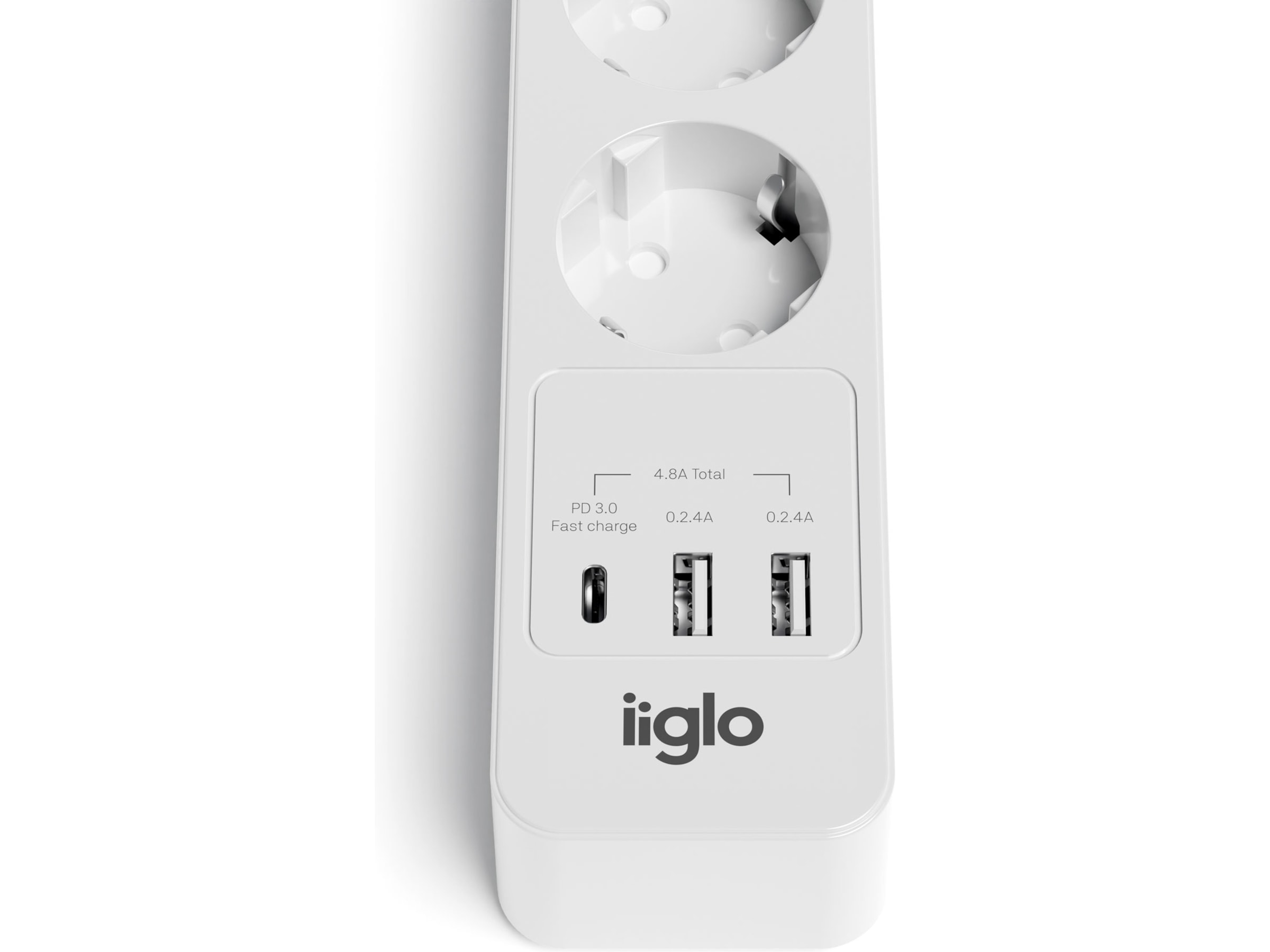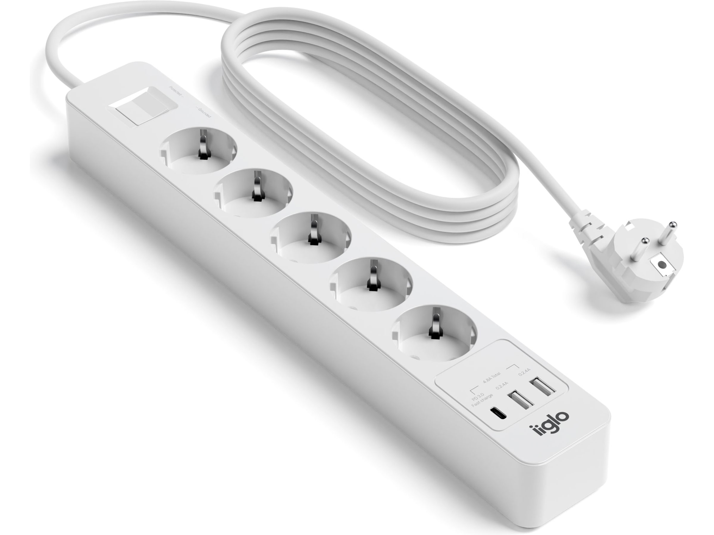 iiglo Overspenningsvern 5x Stikkontakt 1,5m (hvit)
