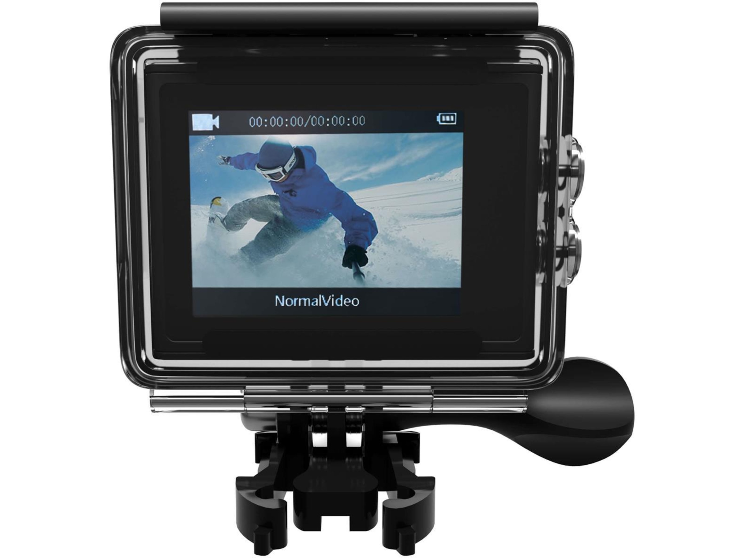 Undervannshus, Rammeholder for kamera, Monteringsadapter, Micro-USB-kabel, Sykkelstyremontering, 2 klebemonteringer, Reim