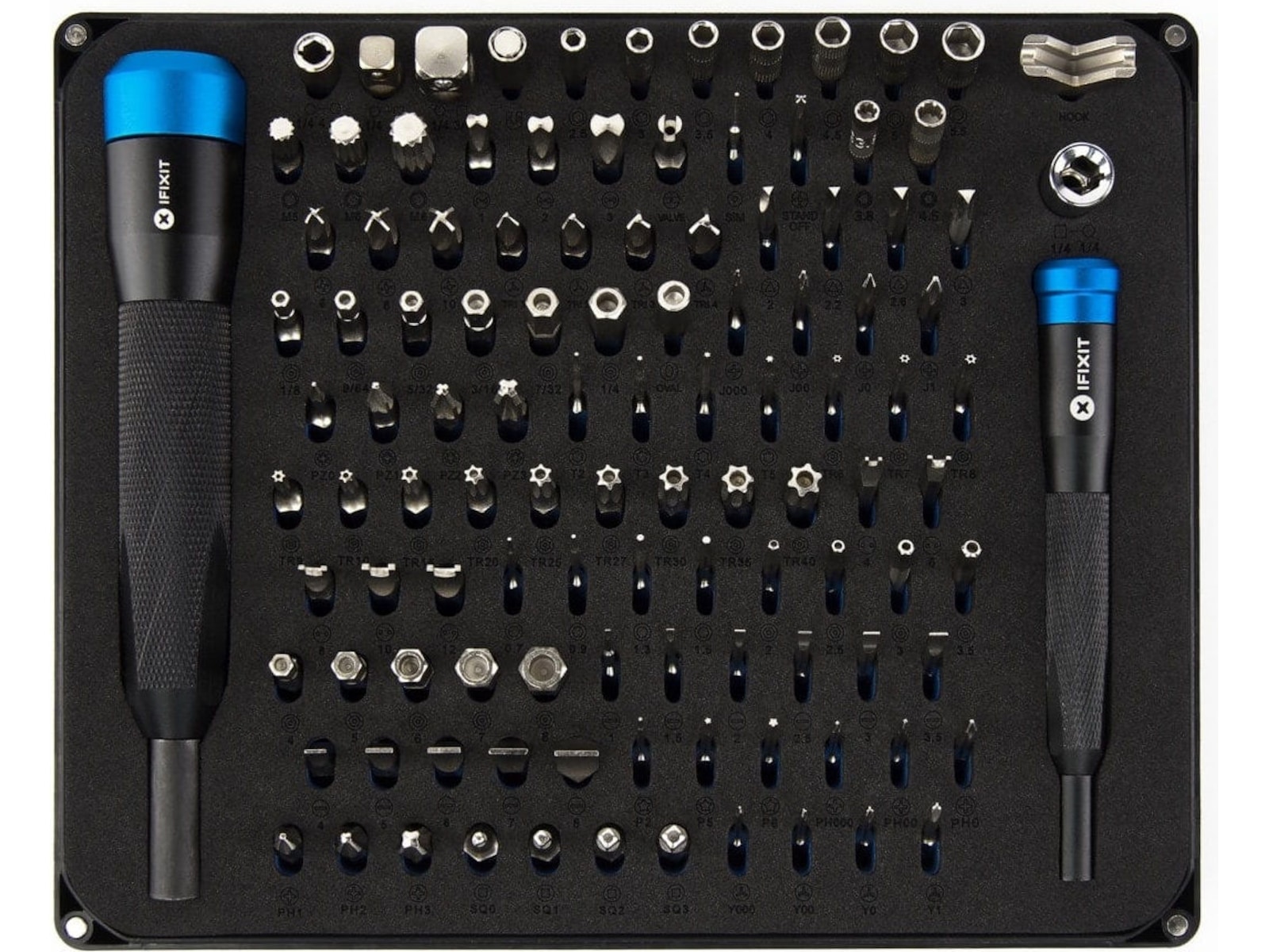 Dette settet inneholder vårt bredeste sortiment av innsatser, komplett med alle de innsatshodene du trenger for alle slags reparasjoner eller hobbyprosjekter. Det inkluderer standardbor som Phillips og Flatt i et komplett utvalg av størrelser for å håndtere alt fra presisjonsreparasjon av elektronikk til hobbyprosjekter. Og det ville ikke ha vært et iFixit-sett dersom det ikke hadde inneholdt alle de eksotiske skrutrekkerinnsatsene fra Pentalobes for reparasjon av Apple iPhone og MacBook, og Gamebits for gamle Nintendo-konsoller.