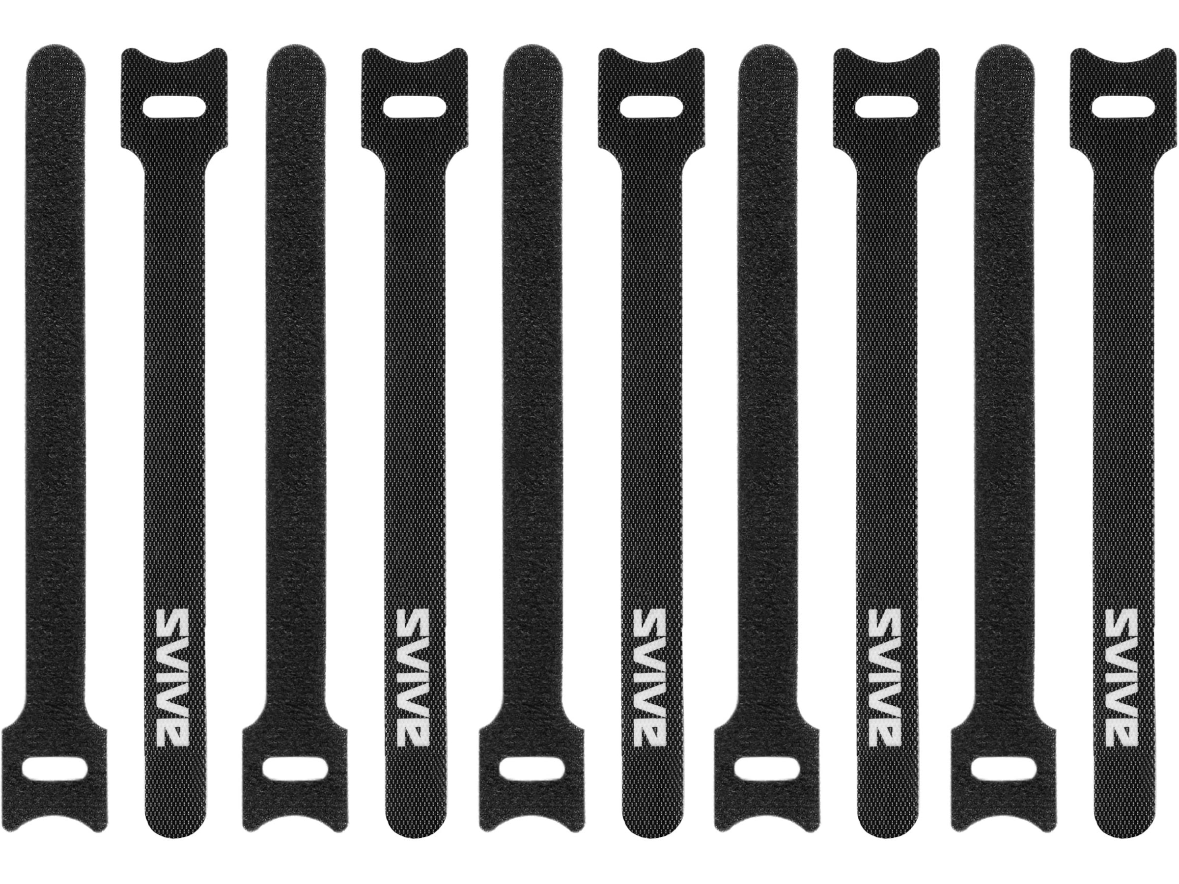 10 stykk kabelstrips med borrelås fra Svive. Denne pakken med kabelstrips hjelper deg å sikre god kabelføring og kabelsystem i din PC.