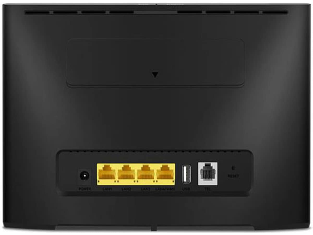 WAN / LAN: 1 x 10Base-T/100Base-TX/1000Base-T - RJ-45, Antenne: 2 x, Telefonlinje: 1 x RJ-11, LAN: 3 x 10Base-T/100Base-TX/1000Base-T - RJ-45, USB 2.0: 1 x 4-pins USB type A