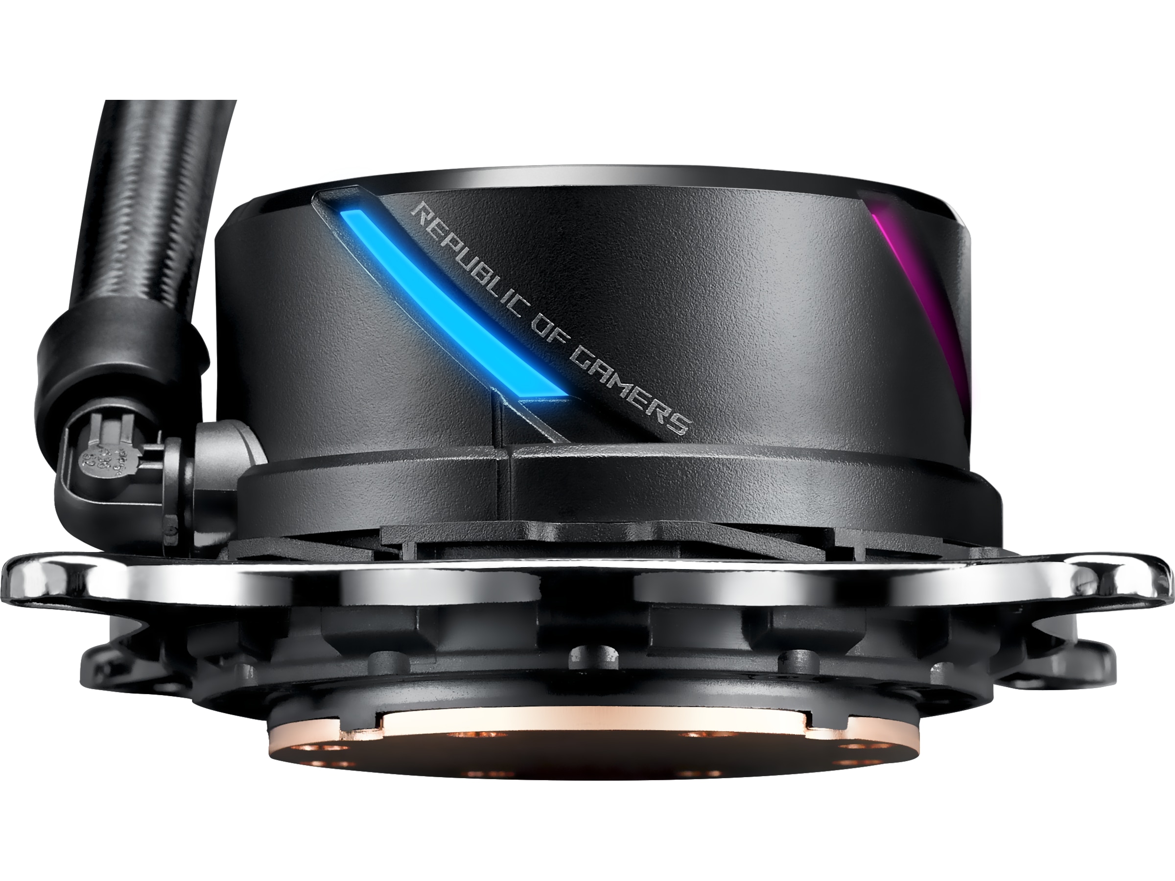 ROG Strix LC er utstyrt med den ikoniske ROG-logoen og kuttmønsteret på pumpehuset som begge lyser med Aura RGB-belysning, og det sikrer at du får en livlig eksplosjon av farger og stil i hjertet av PC-en din. Fargen og lyseffektene kan tilpasses så de står til resten av maskinen, slik at du får et helhetlig uttrykk som er fullstendig ditt eget.