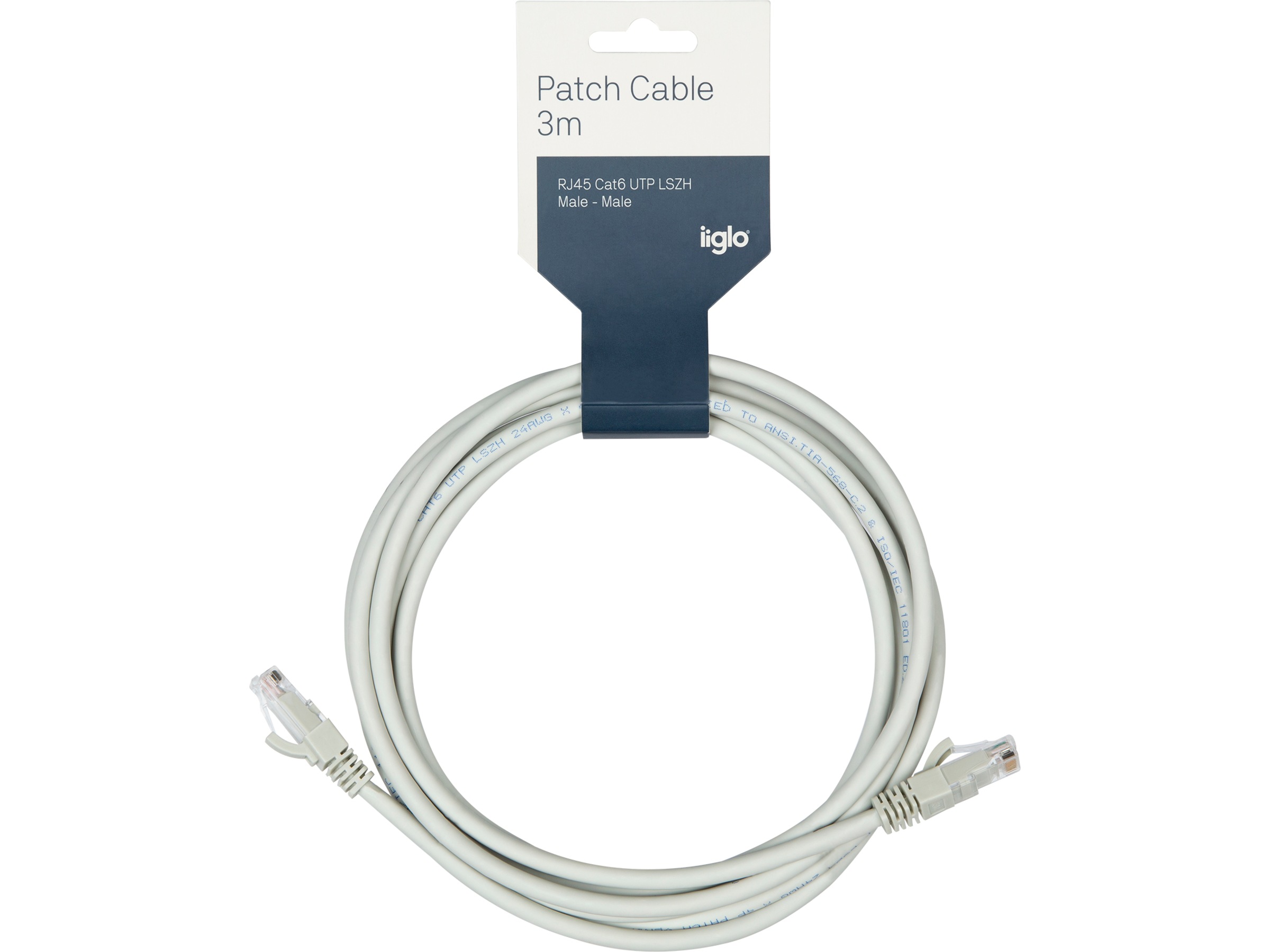 iiglo uskjermet Cat6 grå nettverkskabel 3 meter