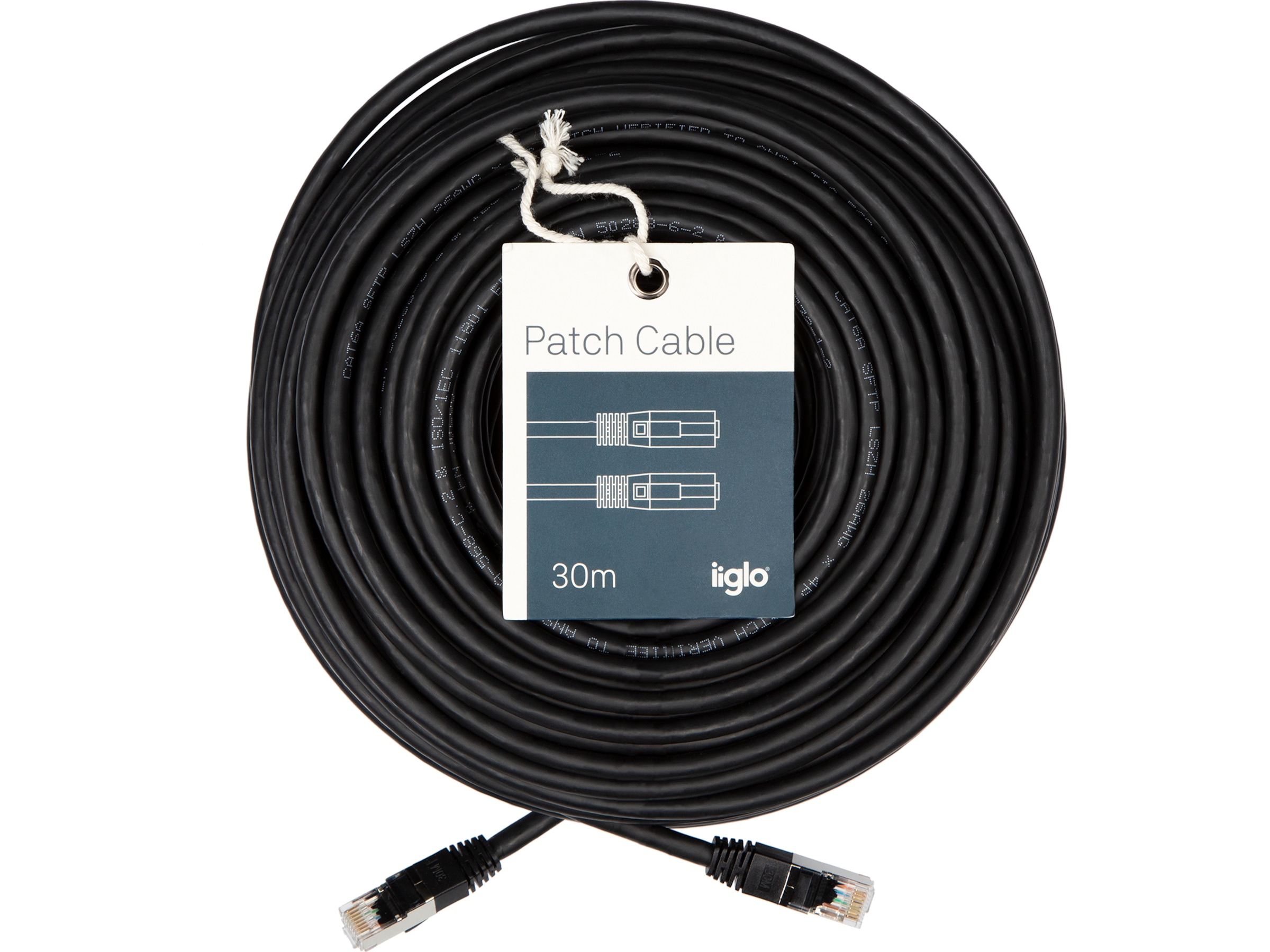 iiglo skjermet Cat6a sort nettverkskabel 30 meter