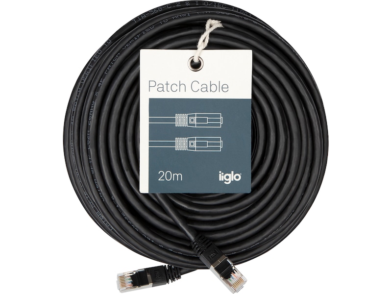 iiglo skjermet Cat6a sort nettverkskabel 20 meter