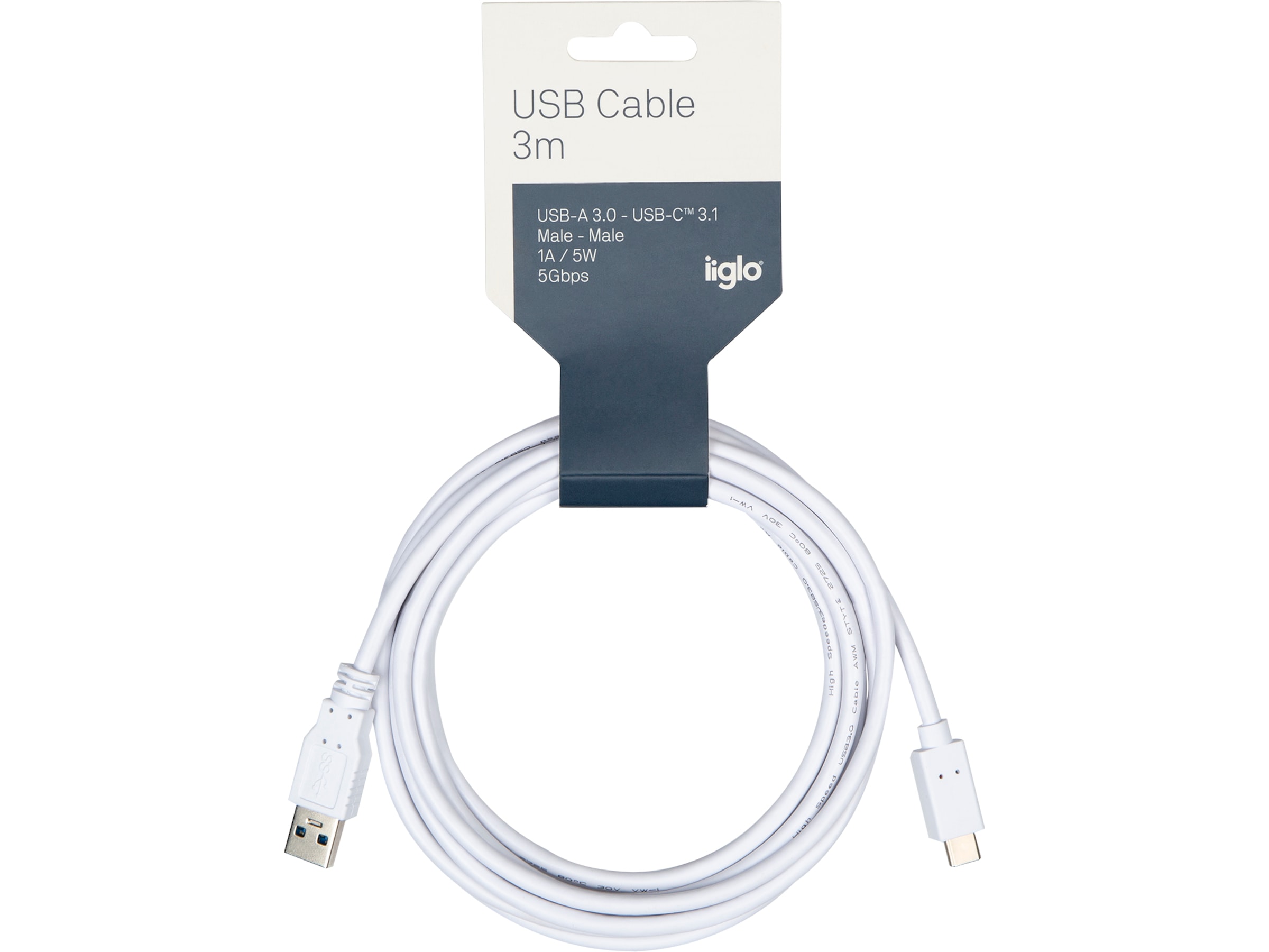USB-A til USB C kabler av høy kvalitet som finnes i flere lengder, kabelen har USB-A 3.0 kontakt med maks overføringshastighet 5Gbps, og kan brukes til lading og synkronisering mot alle enheter som har USB C kontakt.
